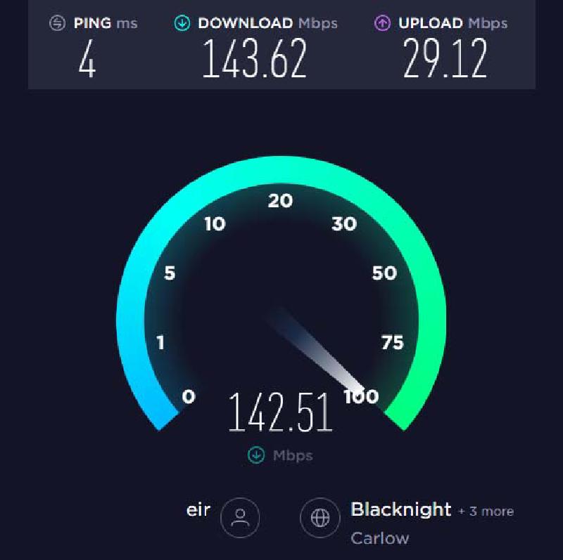 In the intervening years we moved to rural Co. Tipperary and continued using DSL, but due to living on the absolute edge of the 5km limit for DSL exchanges we got the absolute minimum available speeds at the time (about 0.8Mbps). Then around 2015 we ditched the DSL thanks to the availability of a strong 4G signal in the area and a relatively big jump to speeds of around 40Mbps.